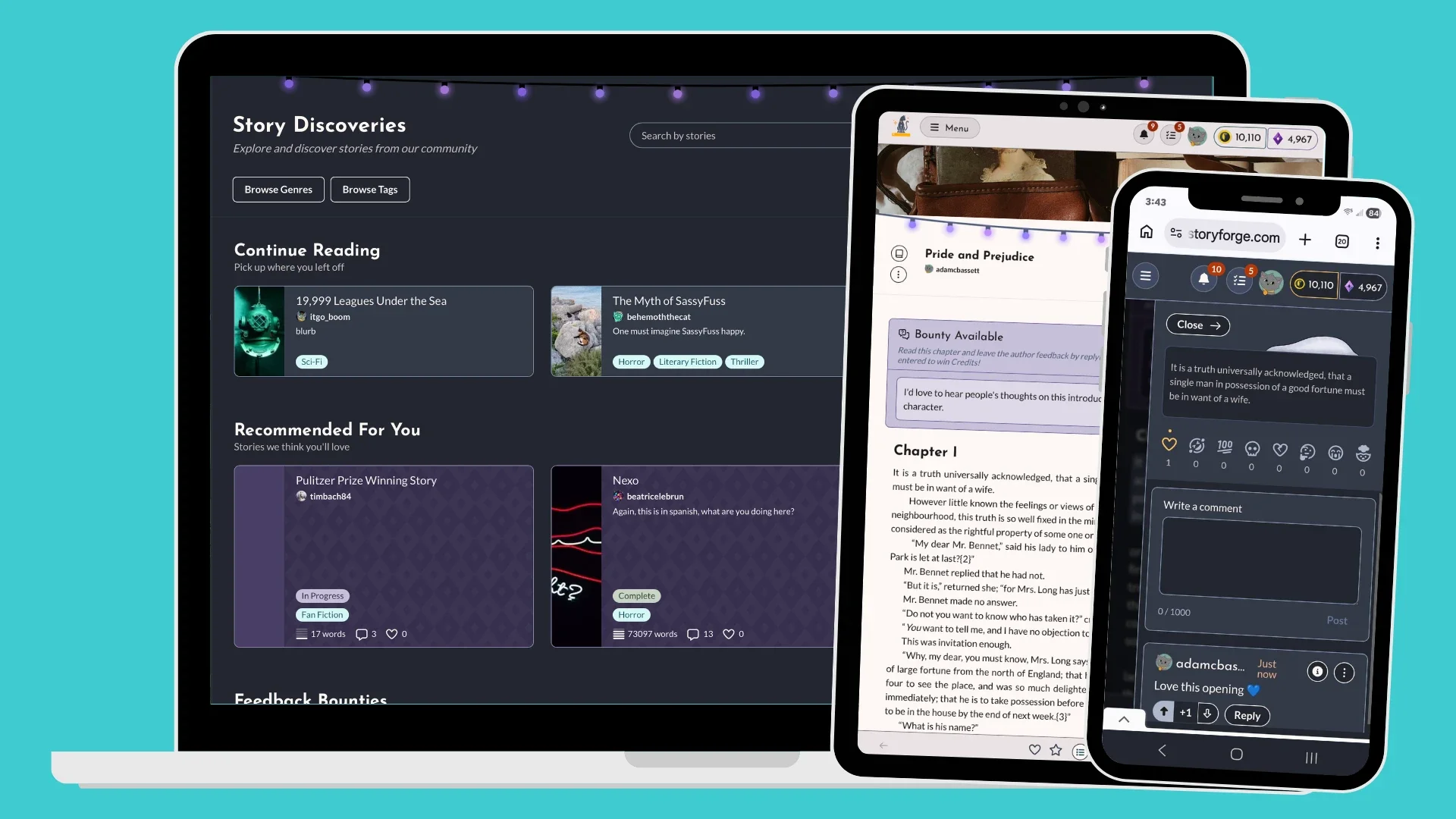 Quit doomscrolling, discover a new story instead. StoryForge is home to tons of skilled and upcoming authors whose work you can read for free. You can even get paid for reading and giving authors feedback on their work!