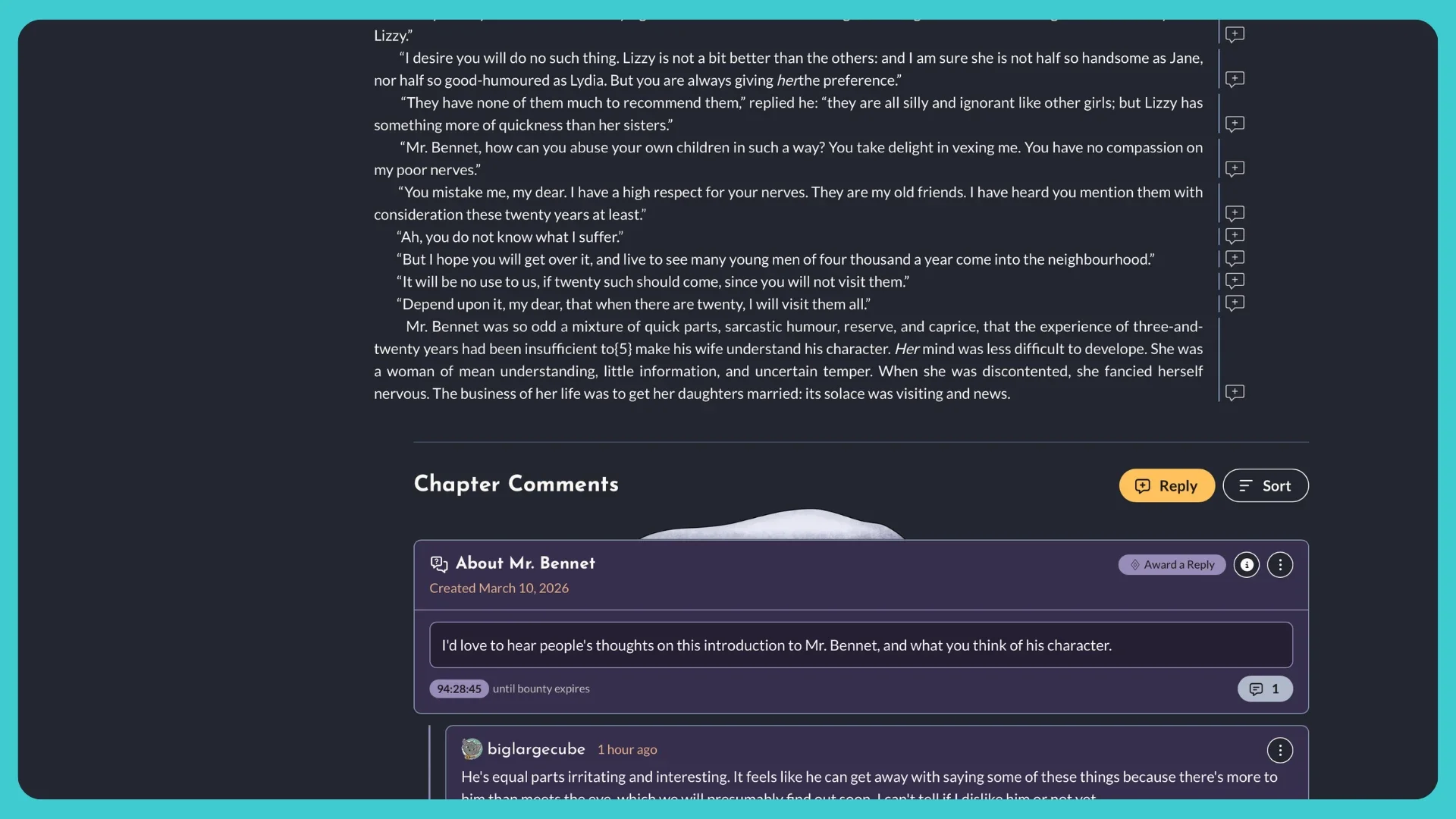 Once you’ve published your story on StoryForge, you can create Bounties, where you can ask readers what they think of it. Pick your favorite response, or the most helpful one, and award it to thank them for their time!