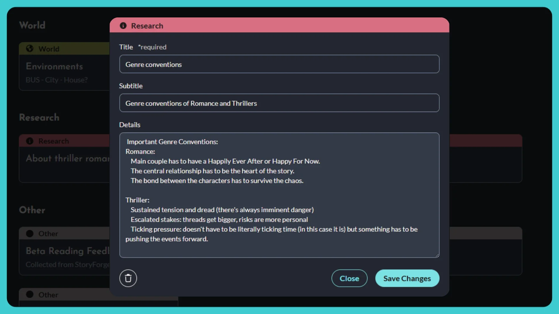 Never forget a thing! Plan ahead or take notes on the fly in each story’s Planner. Create planning sheets for all of your story’s characters, settings, research, and more, then filter and sort them to focus on just what you need in the moment.